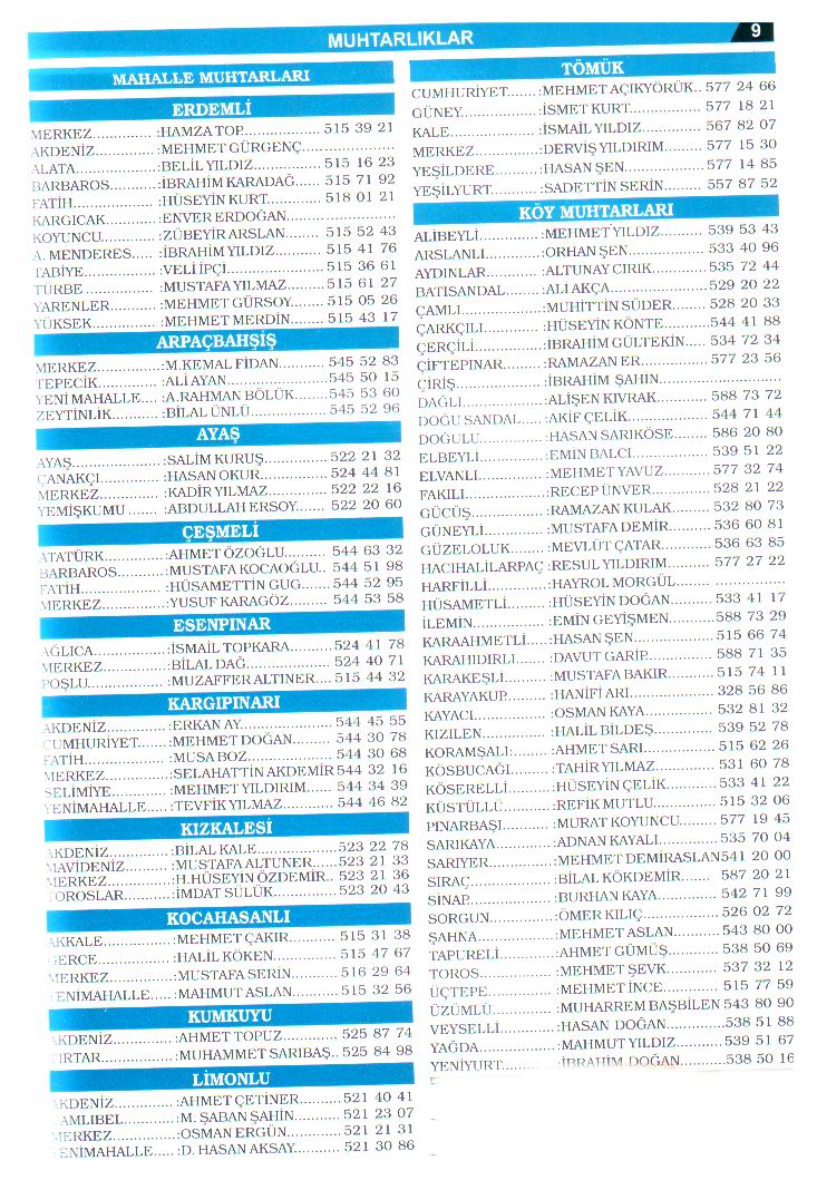 Muhtara ait telefon Numaraları